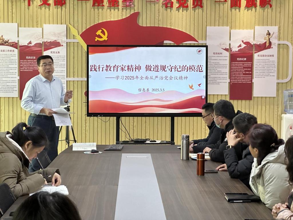 3月5日上午,taptap点点体育在系党员活动室召开2025年全面从严治党工作会议。会议由党总支书记荆茂春主持,taptap点点体育全体教师参加会议。