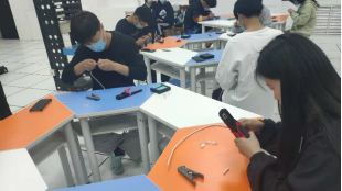 比赛一开始,选手们迅速就位,剪线、排序、压头、测试,操作有序,忙而不乱。通过紧张激烈的角逐,吴连芳、张峥嵘、创硕硕、付豪、付用伟共5名同学获得一等奖。其中吴连芳同学仅用时2分29秒,显示出了扎实的专业功底和良好的职业素养。