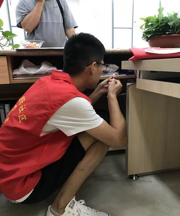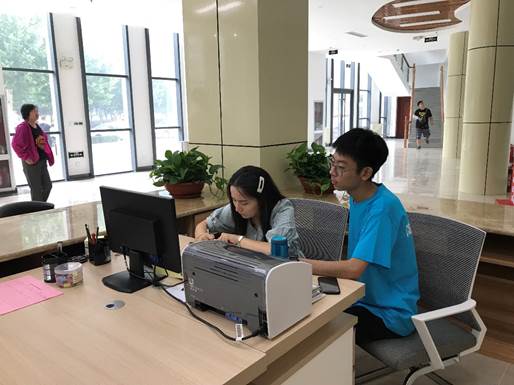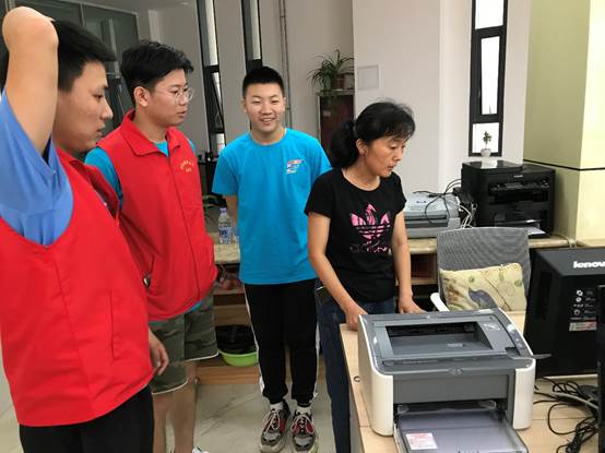虽然天气炎热,但仍挡不住学生服务活动的热情。同学们分组帮助社区管理人员进行各种工作,一组同学负责网络共享打印机配置;