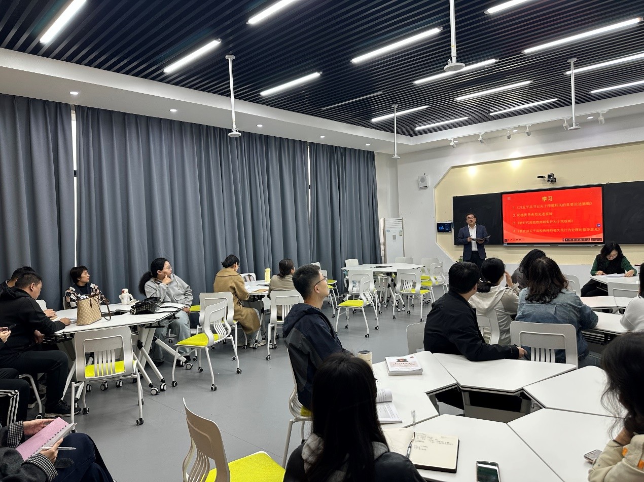活动分为三部分,首先宗延雷带领全体教师认真学习了《习近平总书记关于师德师风的重要论述摘编》《新时代高校教师职业行为十项准则》等师德师风教育的政策要求,其次,发放《师德师风问题自查自纠表》,教师对照具体问题逐一自查自纠,第三,集体观看学习师德优秀典型人民教育家于漪的先进事迹。