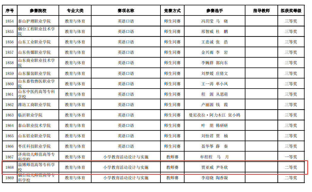 2024年12月26日,第十七届山东省职业院校技能大赛拟获奖名单予以公示,taptap点点体育取得了二等奖1项,三等奖2项的好成绩。