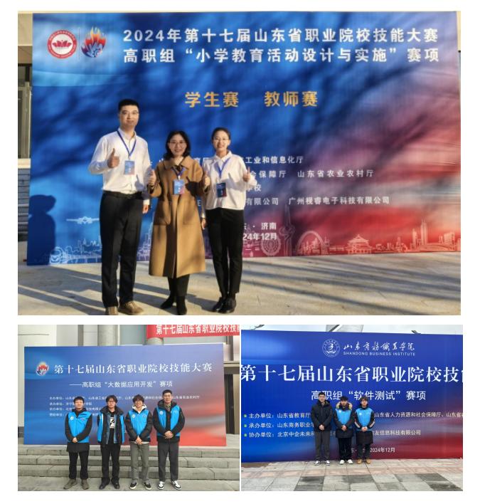 贾亚威、尹冬欣两名老师参加的小学教育活动设计与实施教师赛获得二等奖,李润生老师参加的大数据应用开发师生同赛获得三等奖,李润生、陈永平两位老师指导的软件测试学生赛获得三等奖。