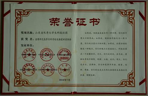 电脑爱好者社团被评为山东省2016年度优秀社团