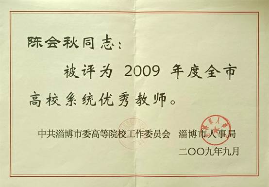 教师获淄博市优秀教师