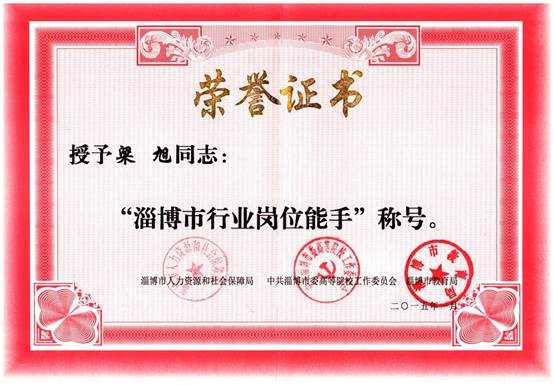 教师获淄博市行业岗位能手称号