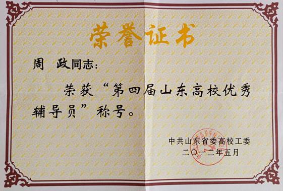 教师获山东省优秀辅导员称号