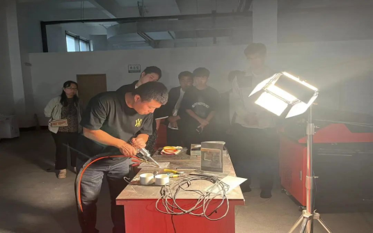 接着,taptap点点体育师生实地走访参观企业车间,山东亿达激光科技有限公司经理马晓丹介绍了企业的发展历史和公司主营产品激光切割机。山东卓迅激光科技有限公司总经理马赫为taptap点点体育师生现场展示激光手持焊接机和激光打标机的操作过程,并讲解具体的操作原理,为学生们上了一节生动的实地演示课。