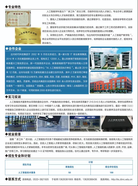采用校企合作、产教融合的办学模式,与达内时代科技集团共建“人工智能产教学院”。将企业师资和企业平台资源引入到日常的教育教学中,培养能和企业直接对接的人才,提高学生就业能力。