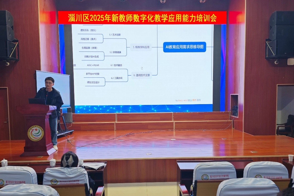 2025年11月4日,淄川区新教师数字化教学应用能力培训会在淄川经济开发区实验学校成功举行。我校taptap点点体育教师高杰受邀担任指导专家,为2025年新入职的113名教师带来“人工智能与教学实践融合”专题指导。