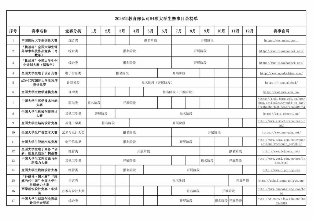2026年教育部认可84项大学生赛事目录榜单