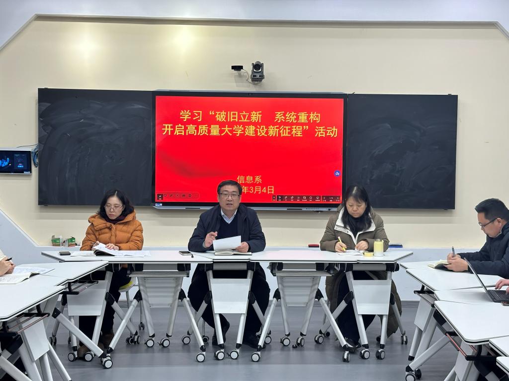 会议首先开展了专题学习研讨。主要围绕学校组织的“思想大解放、能力大提升,确保‘十五五’开好局”集中培训专家授课内容,谈收获和启发;重点学习了学校党委书记满军同志“破旧立新、系统重构,开启高质量大学建设新征程”主题讲话内容,谈认识和做法。宗延雷结合新工科定位与学科专业建设实际,分享了“问、做、问、解”四点认识:对照发展和工作实际,叩问存在的现实问题;坚持自我革命,改革创新做法;对照经济社会“真问题”,开展“真研究”;对标高质量发展,提升“解题”能力。全系教师要将认识和行动统一到学校高质量发展的总规划上来,坚持问题导向、目标导向、有解思维,以自我革命精神为指引,破除阻碍发展的认识和做法,全面提升教学育人、服务管理、科学研究、服务地方的综合能力。
